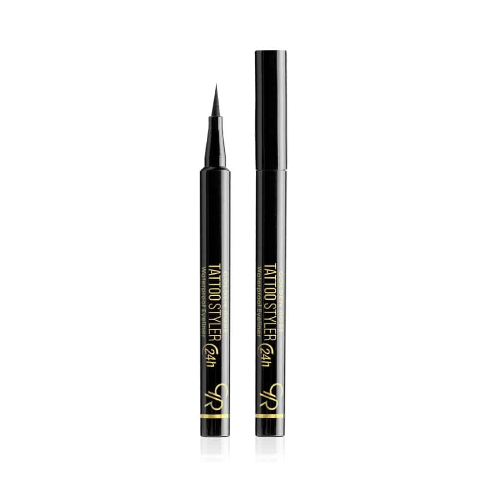 Golden Rose Tattoo Styler Eyeliner με νέα αδιάβροχη υφή, γλιστράει εύκολα και προσφέρει ματ, έντονο μαύρο χρώμα με εύκαμπτη, εξαιρετικά λεπτή μύτη.